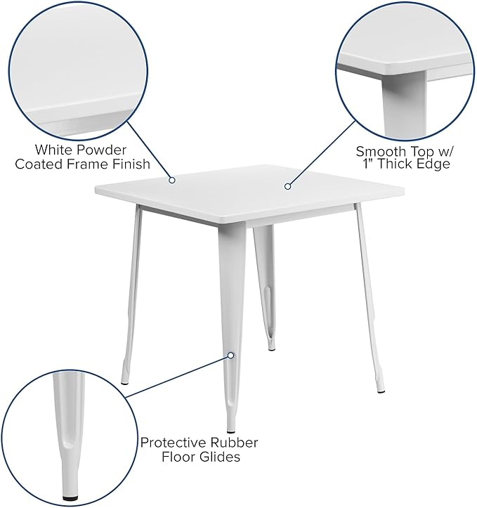 Flash Furniture Felix Commercial Grade 31.5" Square White Metal Indoor-Outdoor Table