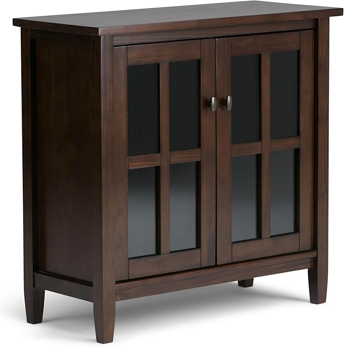 SIMPLIHOME Warm Shaker SOLID WOOD 32 inch Wide Transitional Low Storage Cabinet in Tobacco Brown for the Living Room, Entryway and Family Room