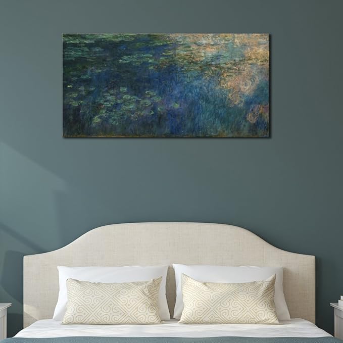 Wieco Art Reflections of Clouds on the Water Lily Pond Giclee Canvas Prints Wall Art of Claude Monet Oil Paintings Large Modern Artwork Pictures Ready to Hang for Bedroom Home Office Decorations L