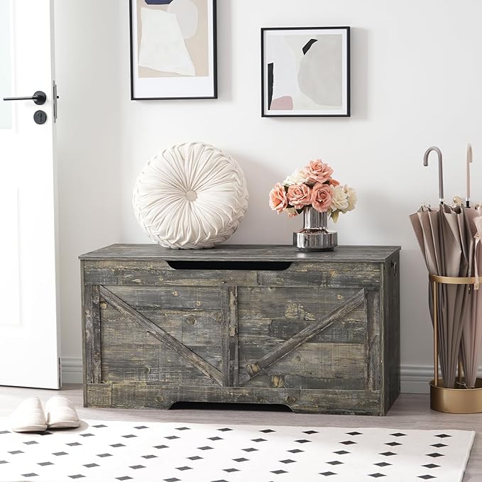 - You Decide Its Functions: This storage bench adopts simple design and vintage gray appearance design, which is very suitable for creating a comfortable and attractive atmosphere. It is designed with a storage area, which can be used as a bedside stool, storage chest, shoe bench, storage bench, toy box