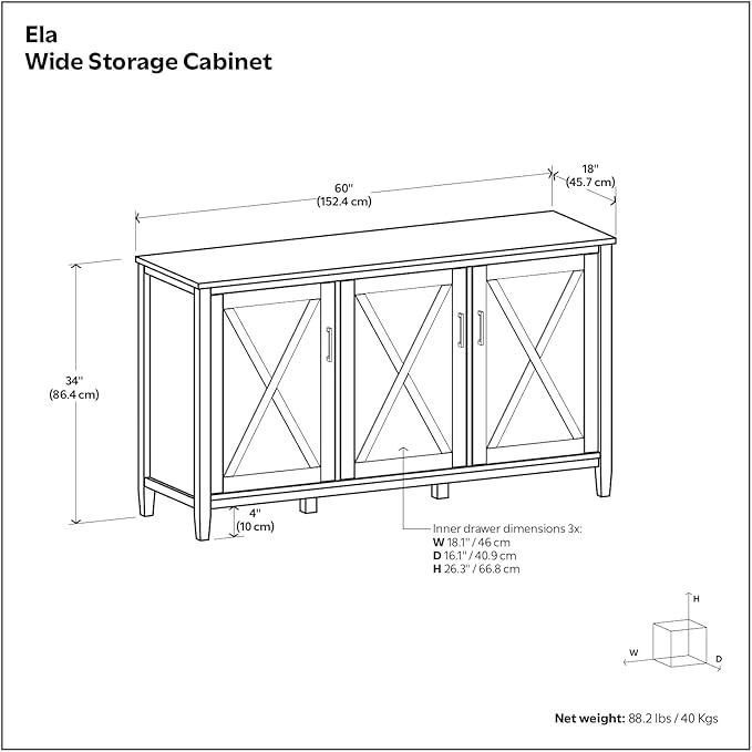 SIMPLIHOME Ela Solid Wood 60 inch Wide Transitional Wide Storage Cabinet in Smoky Brown for The Living Room, Entryway and Family Room