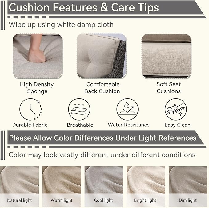 - [Hand-woven PE Rattan] The Hand-woven PE rattan is UV-resistant, water-resistant, and durable. Prolonged use in humid environments may reduce life expectancy